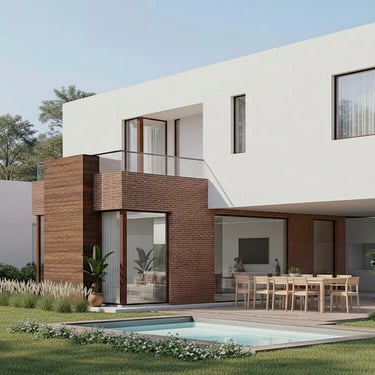 MATERIA: Toda la propuesta se trabajó con materiales nobles; ladrillo, hormigón visto y carpintería metáliuca en el ecrramiento de frente; perfilería de hierro y WPC en la pérgola; y hormigón armado con revestimiento contínuo de cuarzo más piso atérmico en listones para la piscina y el solarium.
