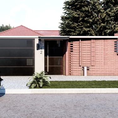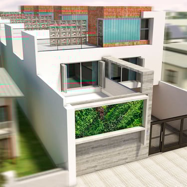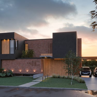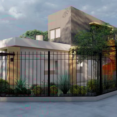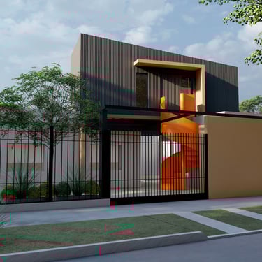 FORMA: El proyecto plantea la conformación de una caja de dos niveles como volumen principal de la casa, con una serie de recortes en planta baja que conforman el acceso principal y desmaterializan la esquina. El volumen bajo anexo contenedor de la cochera/quincho, ve acentuada su diferenciación del cuerpo principal mediante el uso del color en la fachada. La ampliación de un patio interno aporta una generosa expansión descubierta.