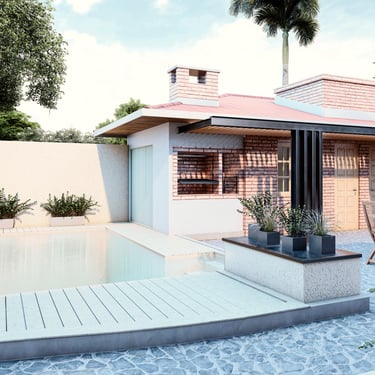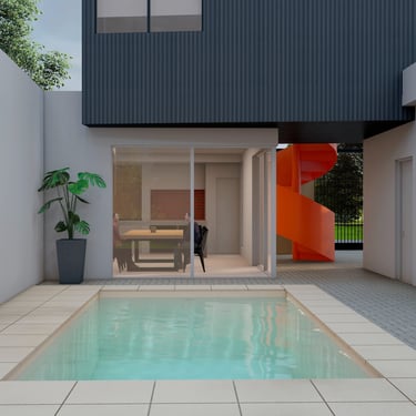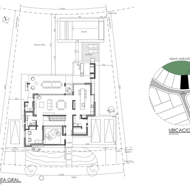 FUNCION: Se plantearon dos condiciones; la necesidad detectada por el estudio de optimizar el uso del jardín ubicado al frente de la vivienda otorgándole privacidad y la incorporación de una piscina a solicitud del comitente.