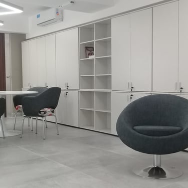 FORMA: La intervención abarcó un semipiso de 180 m2 de planta libre dispuesto en forma longitudinal, con un núcleo de servicios consolidado que fue reacondicionado manteniendo su ubicación original. El programa se dividió en dos zonas bien diferenciadas. Las salas de prácticas se ubicaron en el sector posterior, en torno a un amplio espacio de espera y reunión eventual; y hacia el frente, se ubicaron las funciones administrativas junto a una sala de reuniones. La recepción, levemente desplazada hacia esta área, actúa como elemento articulador de ambos sectores.