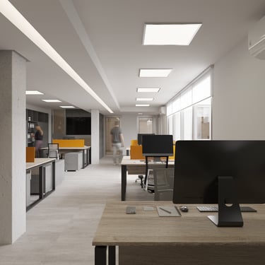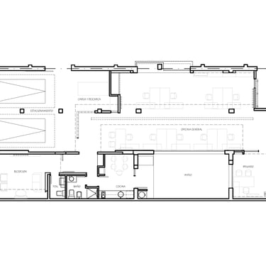 FUNCION: Esta obra nace de la necesidad del comitente, para quien habíamos trabajado en el año 2004, de ampliar tanto sus oficinas administrativas como el depósito de acopio de mercadería. La compra de una nueva propiedad de dimensiones mucho más generosas, permitió el diseño de un área de oficinas desarrollada integramente en planta baja ampliando la capacidad de puestos de trabajo. El depósito, protagonista por sus dimensiones, cede un espacio para una futura intervención que contempla un local comercial y una sala para organizar eventos afines a la actividad.