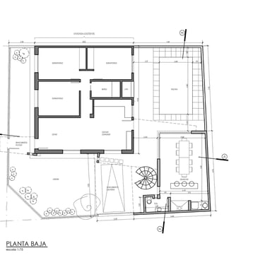 FUNCION: A partir de una pequeña vivienda existente en planta baja ocupada por la familia, se elaboró un programa de ampliación por etapas que consistió en una primera ampliación en planta alta para las áreas privadas, una segunda intervención para transformar un espacio semicubierto en cochera/quincho, y por último ya con estas dos áreas utilizables, la reforma total de la planta baja para albergar los espacios públicos de la casa.