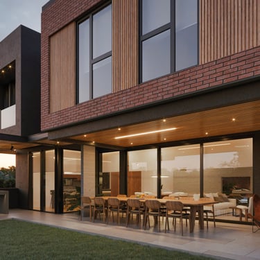 MATERIA: Toda la propuesta se trabajó con materiales nobles; ladrillo, hormigón visto y carpintería metáliuca en el ecrramiento de frente; perfilería de hierro y WPC en la pérgola; y hormigón armado con revestimiento contínuo de cuarzo más piso atérmico en listones para la piscina y el solarium.