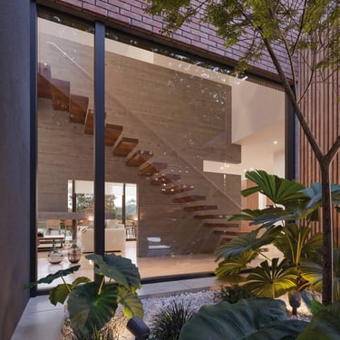 FUNCION: "Una casa que nos represente"..... fue una de las primeras consignas mencionadas por los propietarios. Luego de sucesivas charlas concluímos que esa casa debía ser simple, clara, calma, ordenada, precisa... La misma se divide en una planta baja de uso social abierta al contrafrente con expansiones semicubiertas, con un espacio flexible al frente que pueda oficiar de escritorio y eventualmente habitación de huéspedes; y una planta alta de uso privado con cuatro habitaciones. El acceso y el espacio de doble altura que contiene la escalera articulan las mismas. Completan el planteo una doble cochera, y un jardín al frente que aporta intimidad a la planta baja.