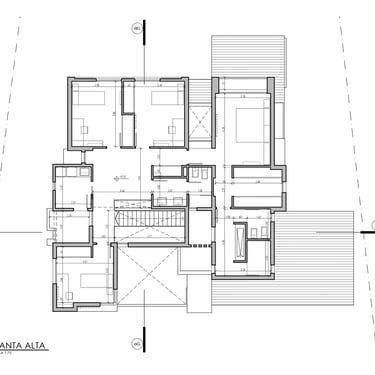 FUNCION: El prograna de necesidades de esta vivienda para cuatro personas, matrimonio con dos hijas, contempla espacios bastante tradicionales. Un área social de dimensiones generosas, con espacios semiintegrados; un área privada compuesta por un dormitorio en suite y dos dormitorios con baño compartido, y el sector de cocheras integrado con la zona de servicios.