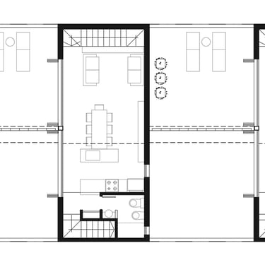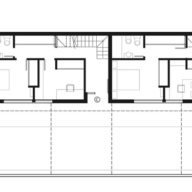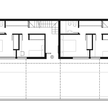 FORMA: Unas pocas pero determinantes premisas fueron las que guiaron el proceso proyectual. En primer término se decidió ubicar el área pública de las unidades en el primer piso avanzando sobre el acceso vehicular, lo que permitió una mayor amplitud y privacidad de las áreas de expansión. Las habitaciones de planta baja y el estudio del segundo piso, fueron conformados pensando diferentes configuracioens que permiten el intercambio de funciones tanto en una instancia inicial como en el desarrollo del tiempo. adaptándose a distintas conformaciones del grupo familiar.